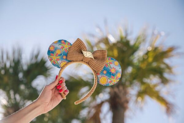 The artist who is behind Mickey Mouse and Minnie Mouse’s new looks is none other than acclaimed Bahamian fashion designer Theodore Elyett, who also has created a uniquely Bahamian clothing line. The vibrant ear headband is filled with bright colors, patterns, and straw, often seen in local art.