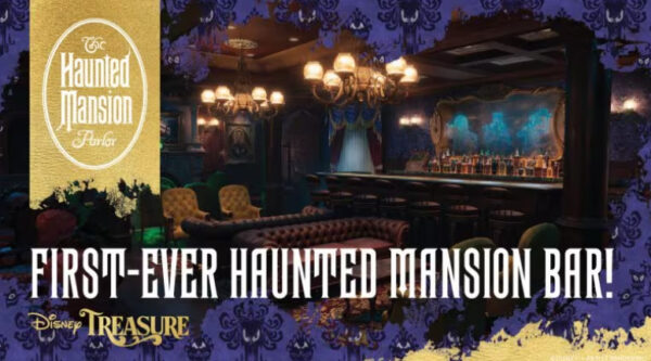 Just in time for Halloween, Disney announced a one-of-a-kind (the spooky kind) bar that’s going to be located on Disney’s newest cruise ship, the Disney Treasure. The Haunted Mansion-inspired bar is sure to attract plenty of foolish mortals and happy haunts alike! This fully immersive experience will let cruisers experience the Haunted Mansion like they never have before. Let’s look at some of the not-too-scary highlights.