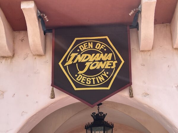The former Indiana Jones Adventure Outpost store contained some themed elements which remain, but props from the new film have been added, primarily housed within glass cases. The Den of Destiny promises “rare antiquities” and “refreshing libations.”