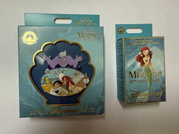 One jumbo Limited Edition pin and one box set Limited Edition pin celebrating 35 years of The Little Mermaid.