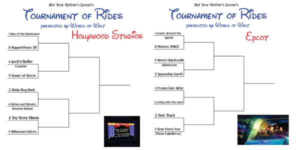 Voting in the Tournament of Rides presented by World of Walt moved to Epcot and Hollywood Studios last week, and the action did not disappoint. Three separate matchups went down to the wire with the winning ride picking up less than 53% of the head-to-head votes.